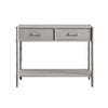 - Complete the look: Pictured with the Elstowe Warm Grey Faux Bamboo Console Table is our Evie Hand Braided Jute Scallop Navy Blue Round Rug, Fyne Aegean Blue Velvet Weathered Oak Rattan Armchair and Ikat Dusty Blue Hand Embroidered Cushion.