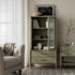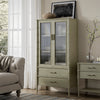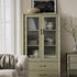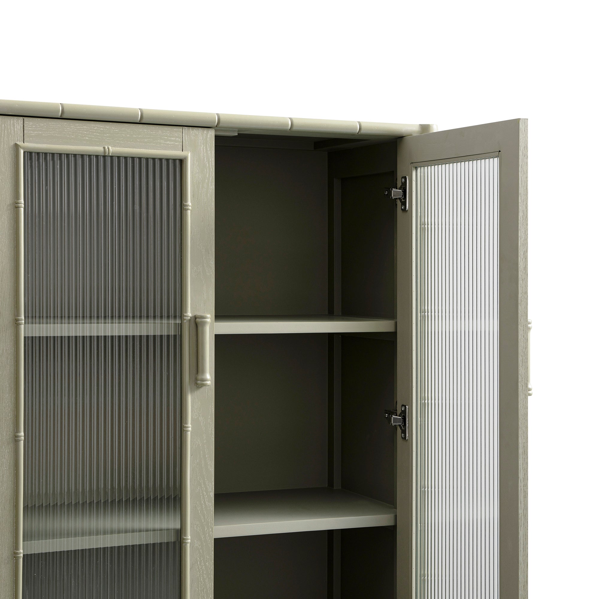 - Complete the look: Pictured with the Elstowe Faux Bamboo and Fluted Glass 2-Door Cabinet in Sage Green, is our Ashby Chesterfield Loveseat in Oatmeal Chenille, and our Villa Stripe Indoor Outdoor Handwoven Grey Rug.