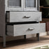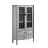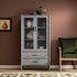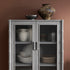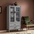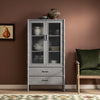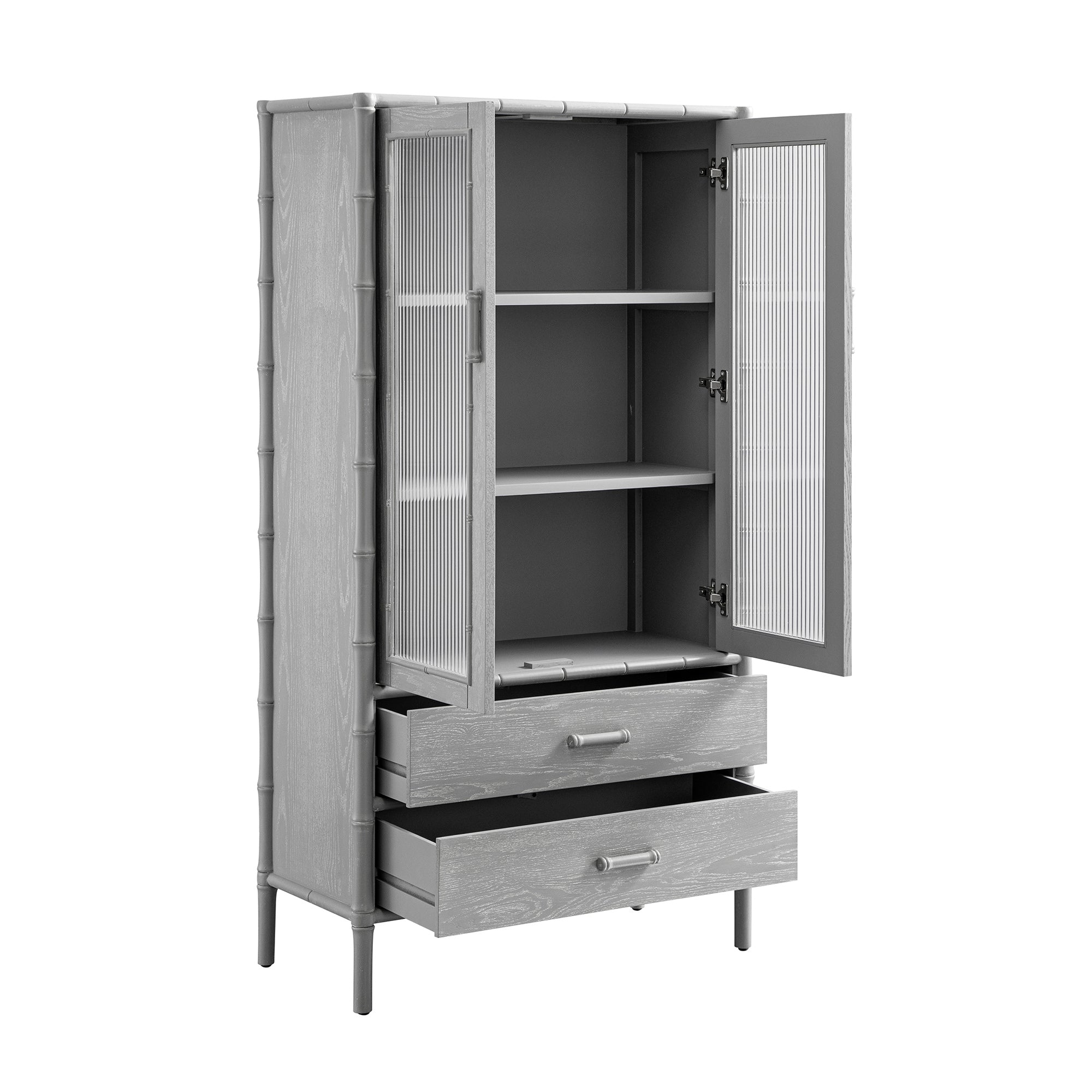 - Complete the look: Pictured with the Elstowe Faux Bamboo and Fluted Glass 2-Door Cabinet in Warm Grey, is our Kamala Geometric Handwoven Wool Rug, and our Hemingford Moss Green Velvet Bobbin Washed Oak Armchair.