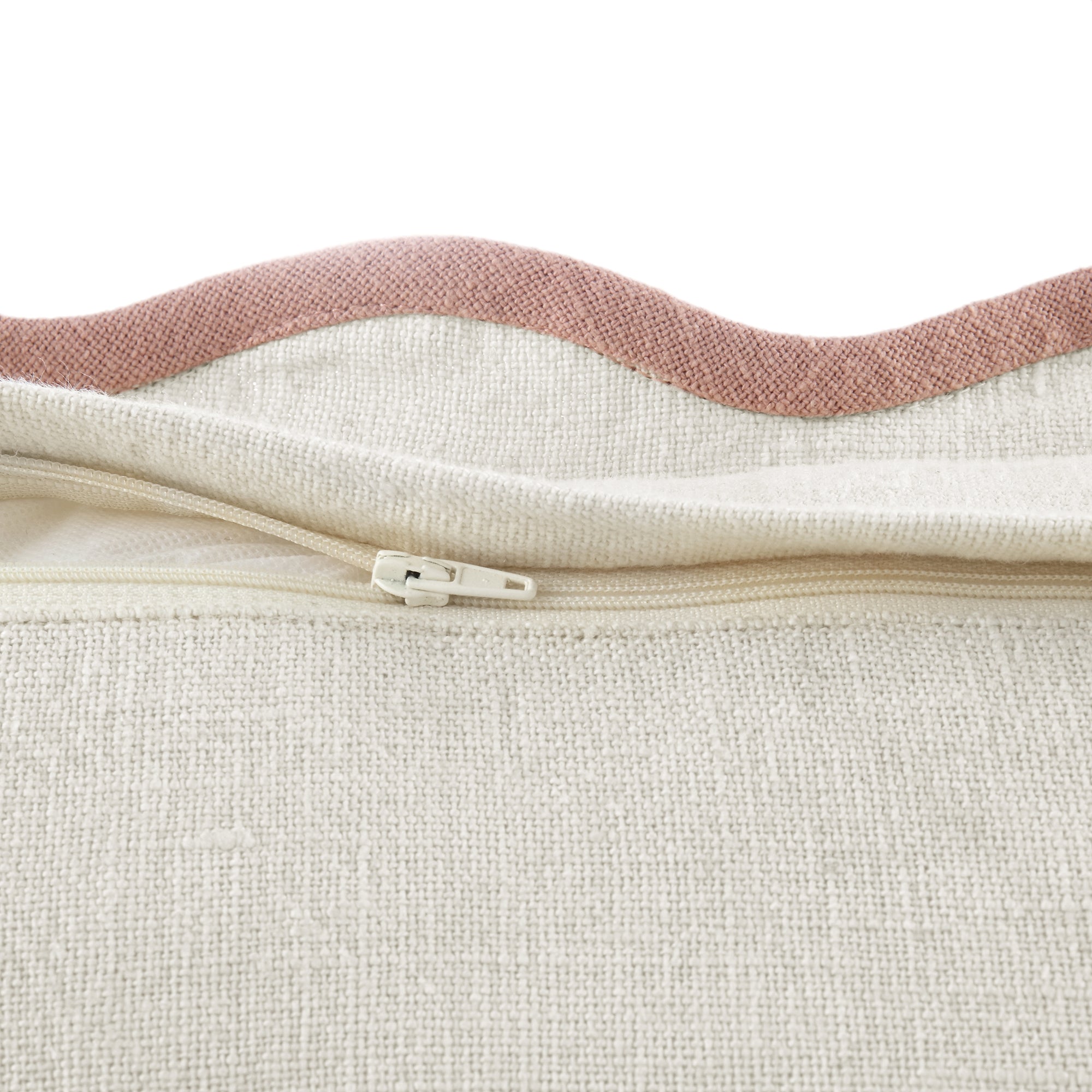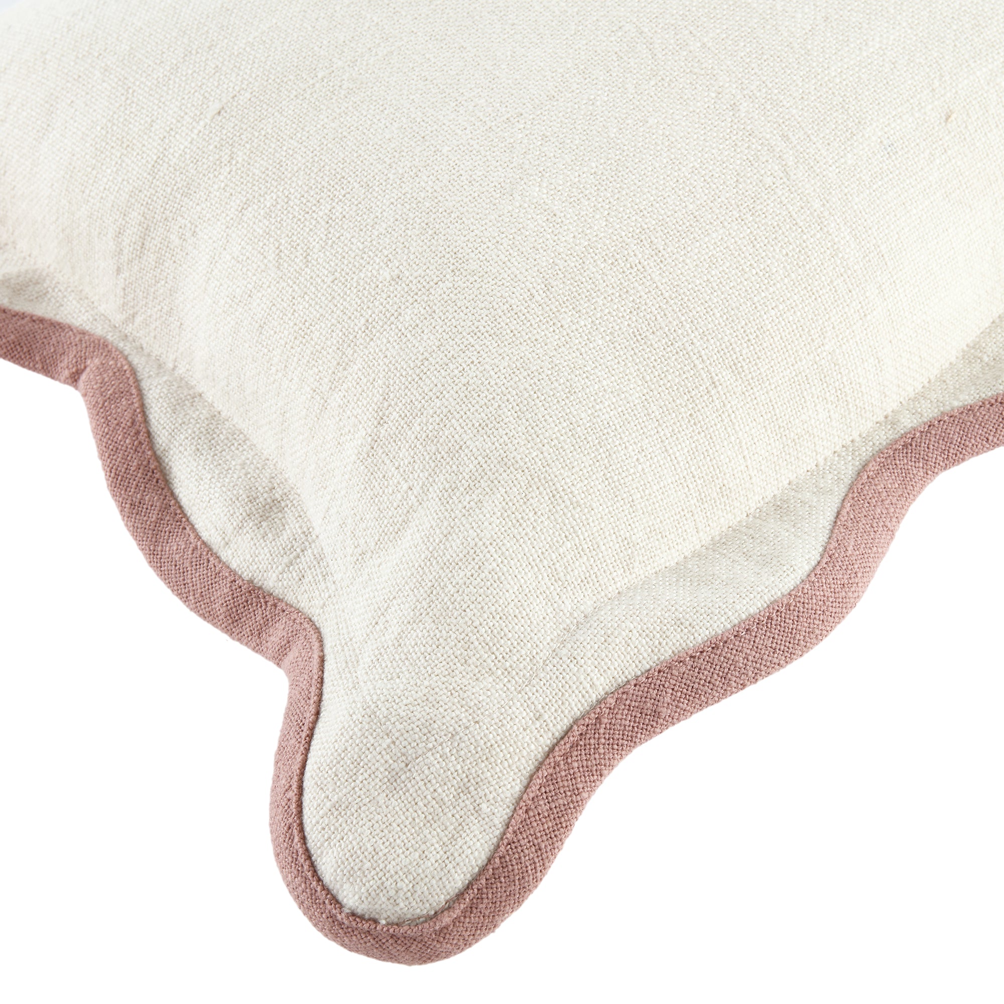 - Featuring a contrast scalloped trim in dusky pink, this cushion is a chic choice for easy styling.