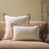 - Complete the look: Pictured with our Evie Linen Dusky Pink Scalloped Cushion is our Daphnis Camel Velvet Loveseat
