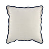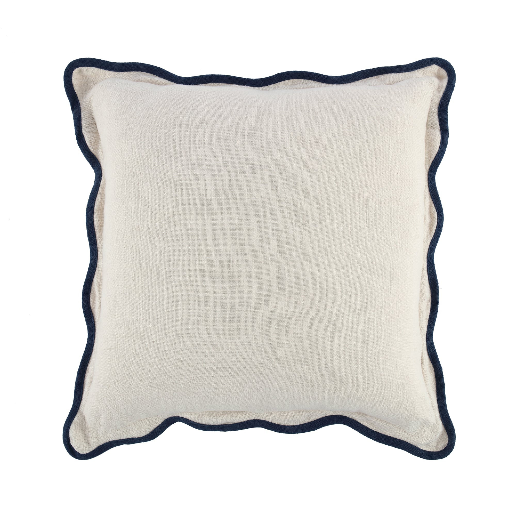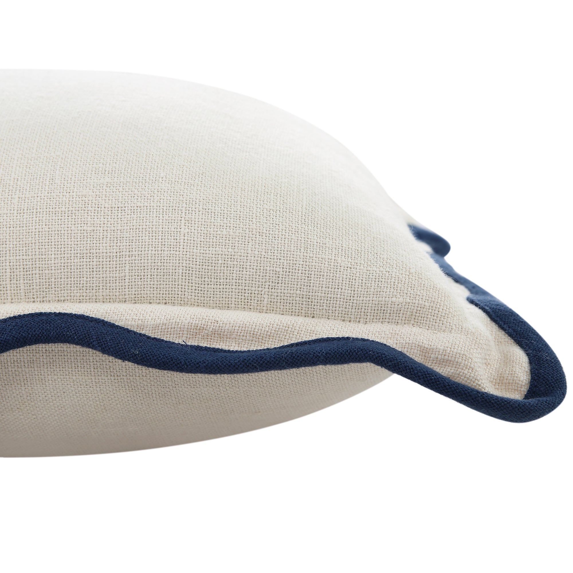 - Featuring a contrast scalloped trim in Prussian blue, this cushion is a chic choice for easy styling.