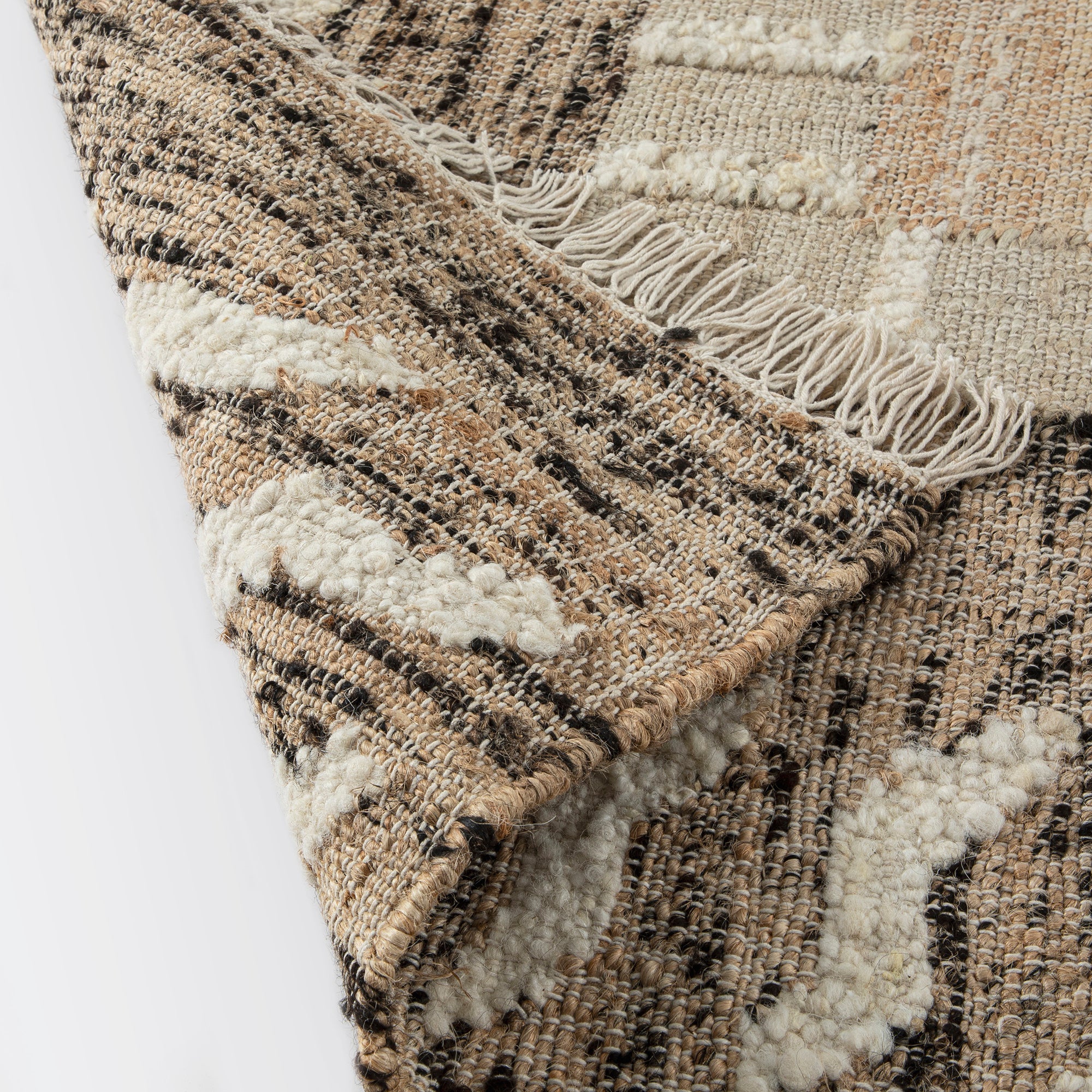 - Meet our Ezri Border Brown Hand Woven Wool & Jute Rug, this traditional design is a great way to add texture to your living spaces while remaining neutral.