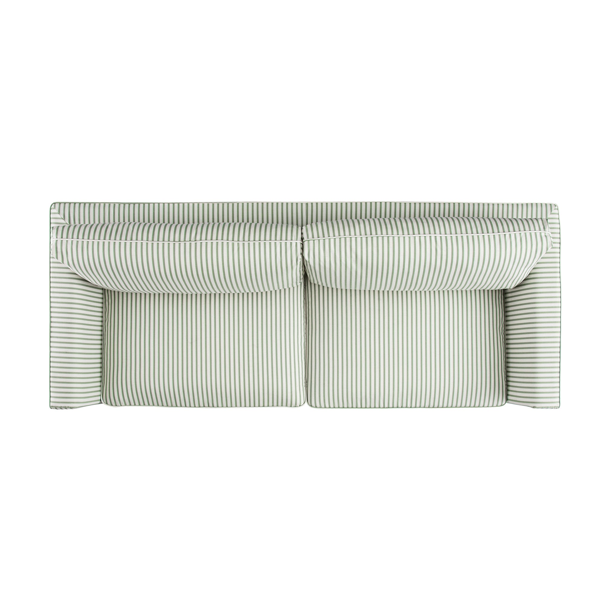 - Upholstered in a soft linen-blend fabric with green and ivory ticking stripes, it captures the charm of country tailoring while maintaining a fresh, contemporary feel.