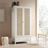 Frances Rattan Double Wardrobe with 1 Drawer, White