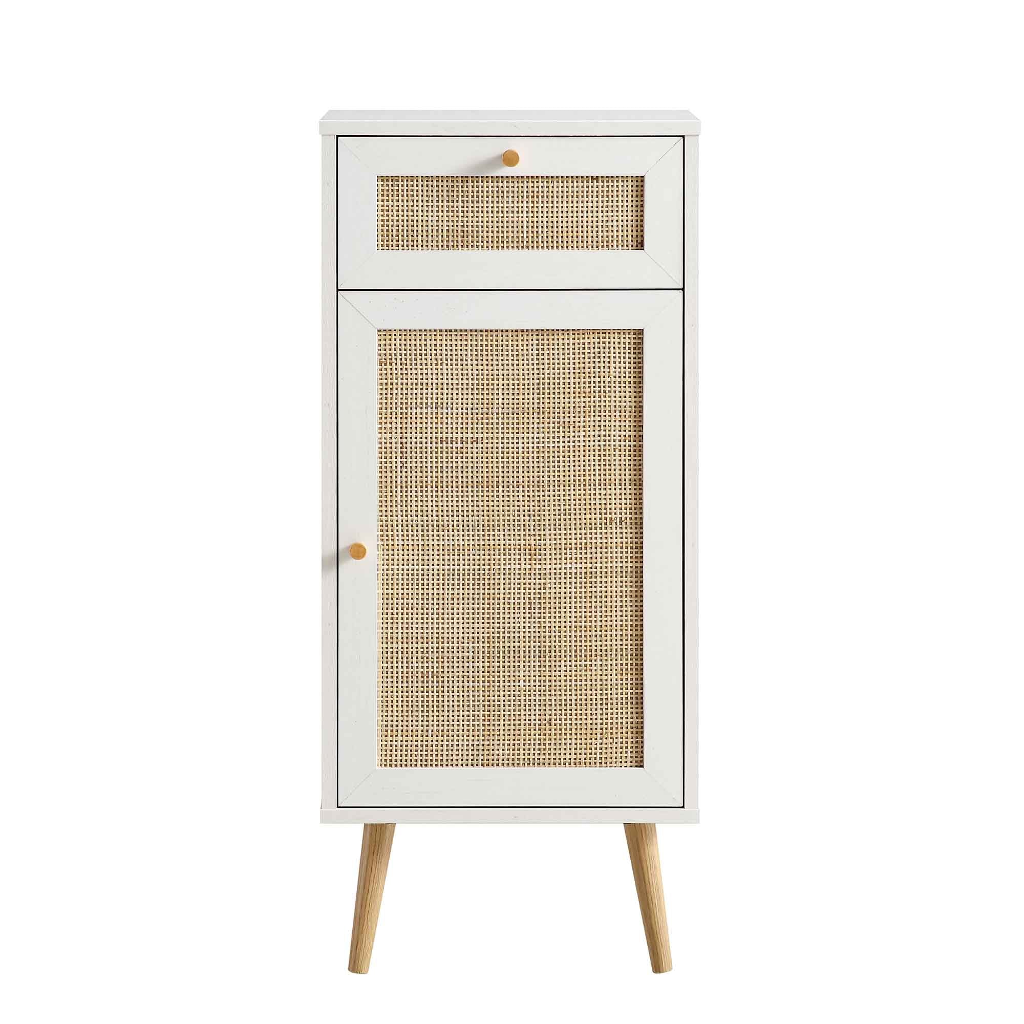 - Our Frances Woven Rattan 1-Door Cabinet is designed with a beautiful natural woven rattan door as well as a drawer, giving ample amounts of discreet storage