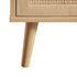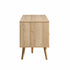 - Hand woven natural rattan door fronts coordinate with wooden grain effect finish and slatted legs for a refreshed Scandi look.