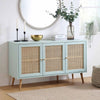 - Complete the look: Pictured with our Mint Frances Woven Rattan 3-Door Sideboard is our Luna Round Bobbin Wall Mirror in a washed white finish.