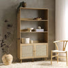 - The Frances Woven Rattan Bookshelf also comes with a double door closed section with cabinet space, which is perfect to tuck away any of your items