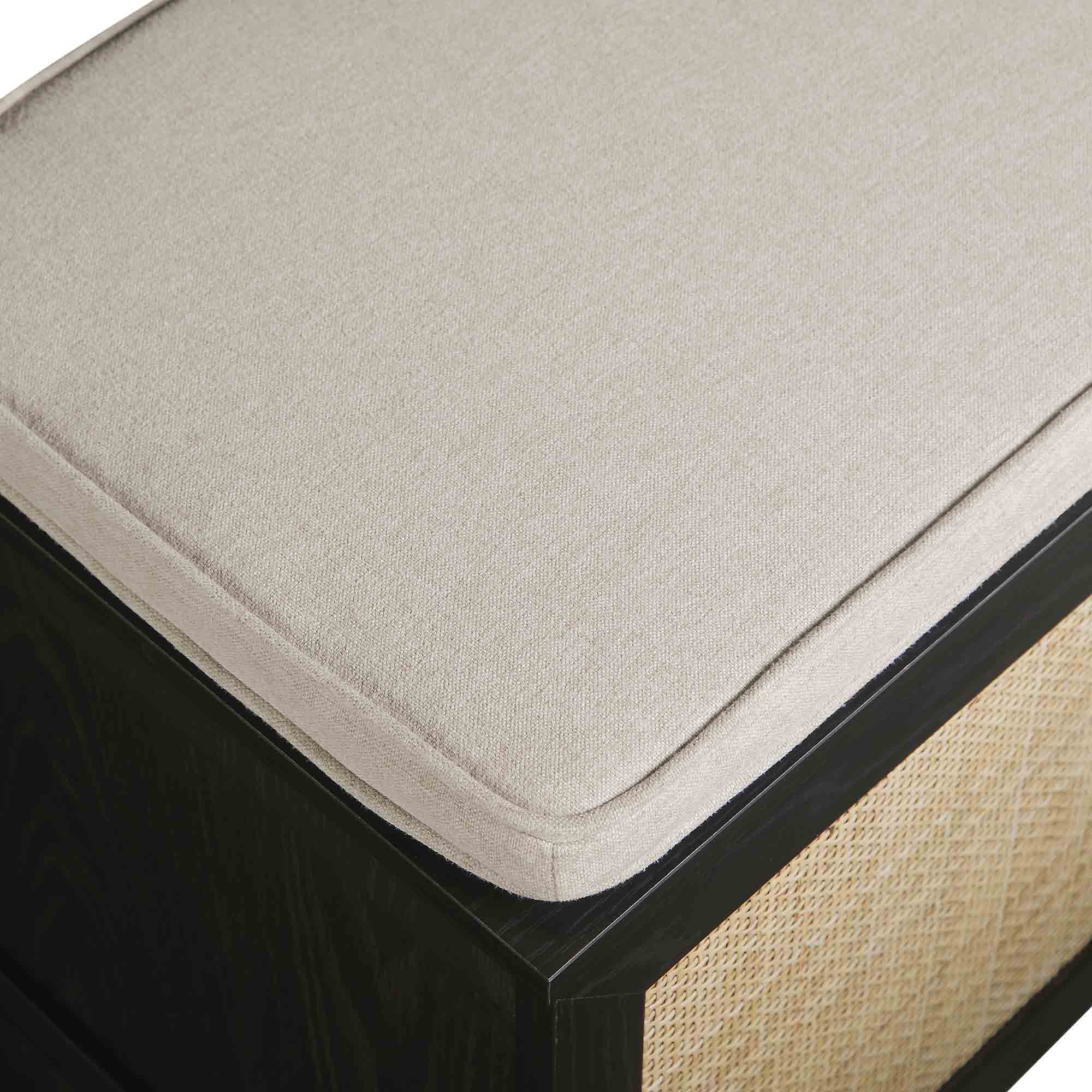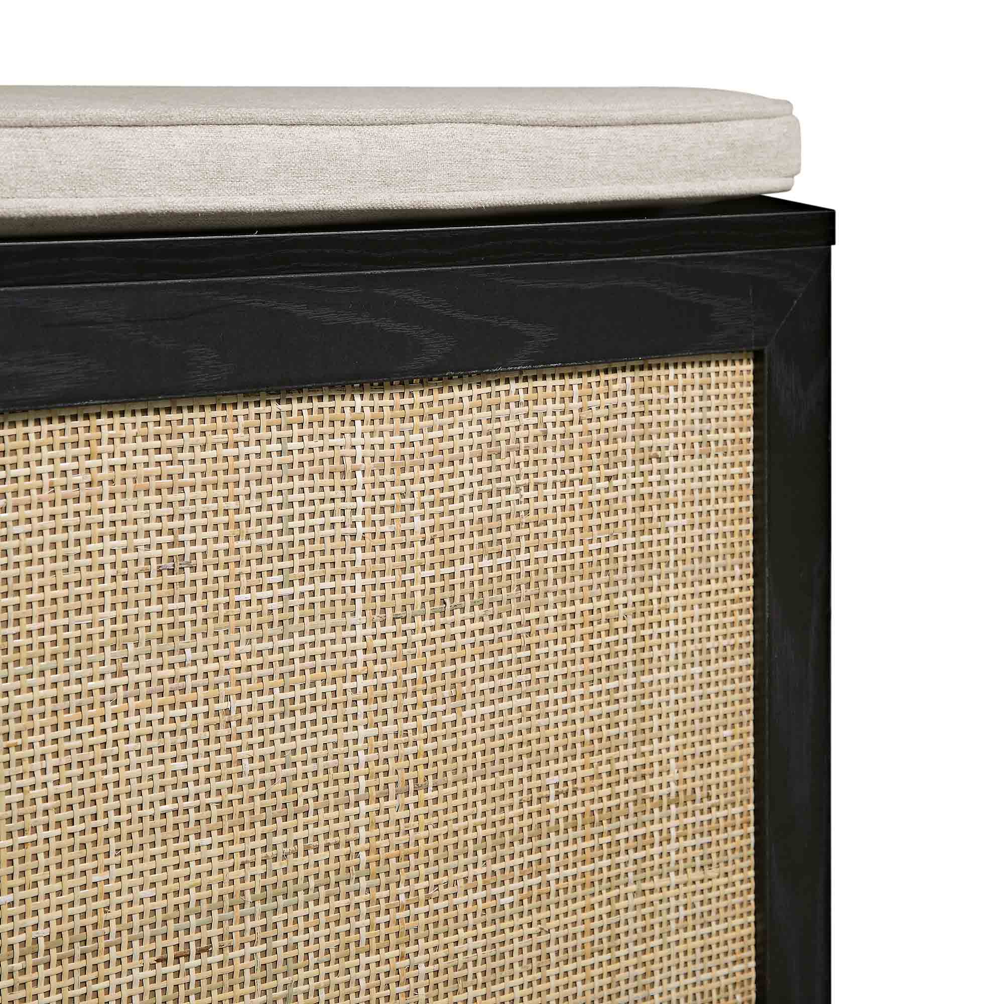 - The natural woven rattan fronts are complemented by oatmeal fabric cushion.