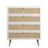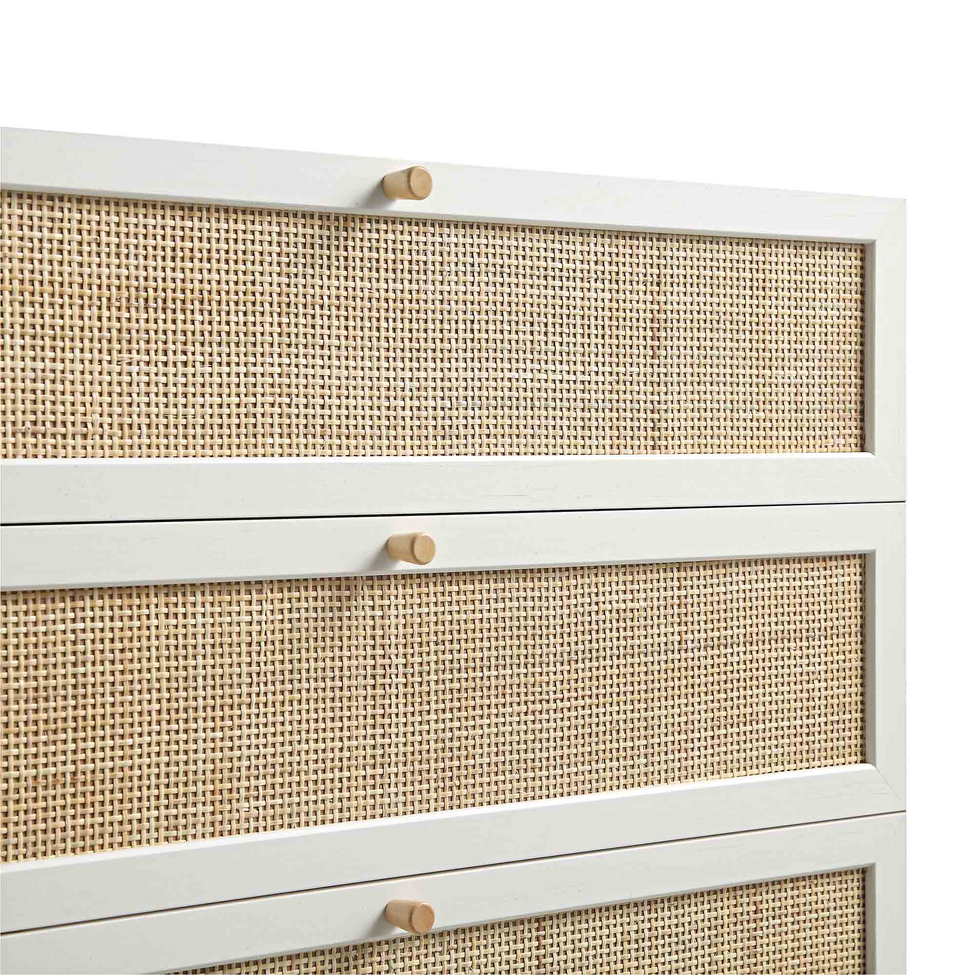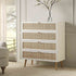 - Complete the look: Pictured with our Frances Woven Rattan Tall Chest of 4 Drawers is our Aurora Hand Braided Cream Jute Rug and our Daphnis Oatmeal Fabric Sofa