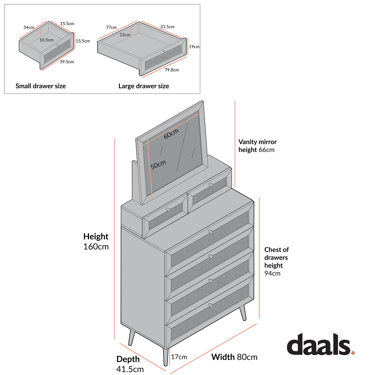 - Store your most loved jewellery pieces, accessories and make-ups in their own special place with our Frances Woven Rattan Tall Vanity Chest which makes storage easy and organised without compromising on style.