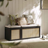 - Complete the look: Pictured with our Frances Woven Rattan Triple Storage Stool is our Geo Curve Cream Hand Tufted New Zealand Wool Rug, our Vine Collection Japonica and Green Palms Cushions and our Boho Collection Maya Satin Stitched Cushion