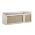 - The natural woven rattan fronts are complemented by oatmeal fabric cushion.