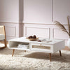- Our Frances coffee table is characterised by beautiful natural woven rattan drawer front and solid wood drawer handles.