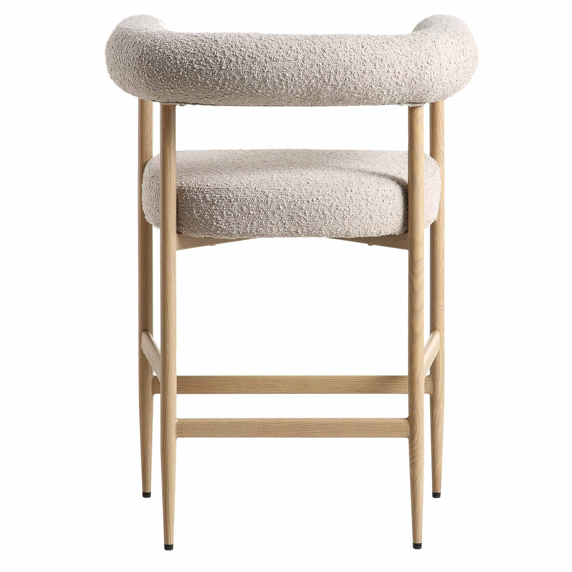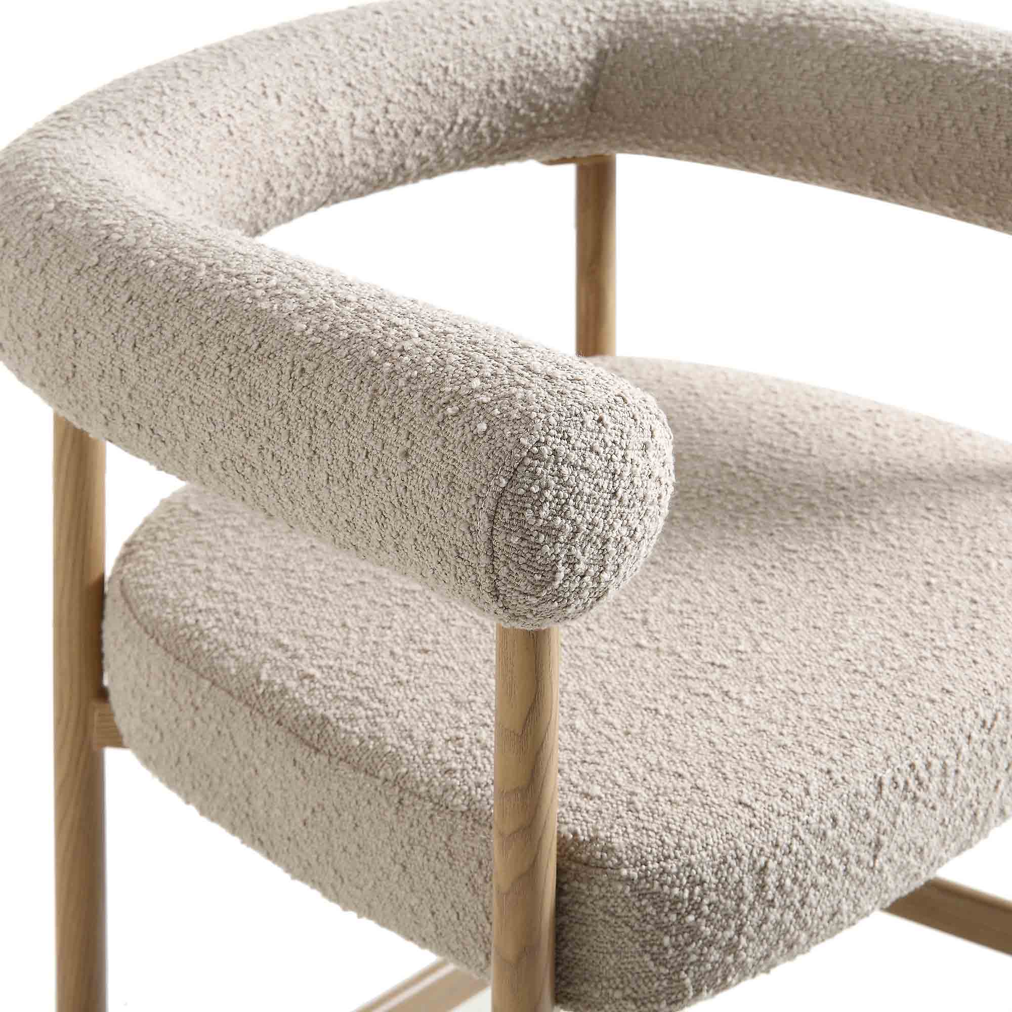 Well-cushioned seat and luxe boucle upholstery in taupe colour is paired with natural wood effect legs for a sophisticated look.