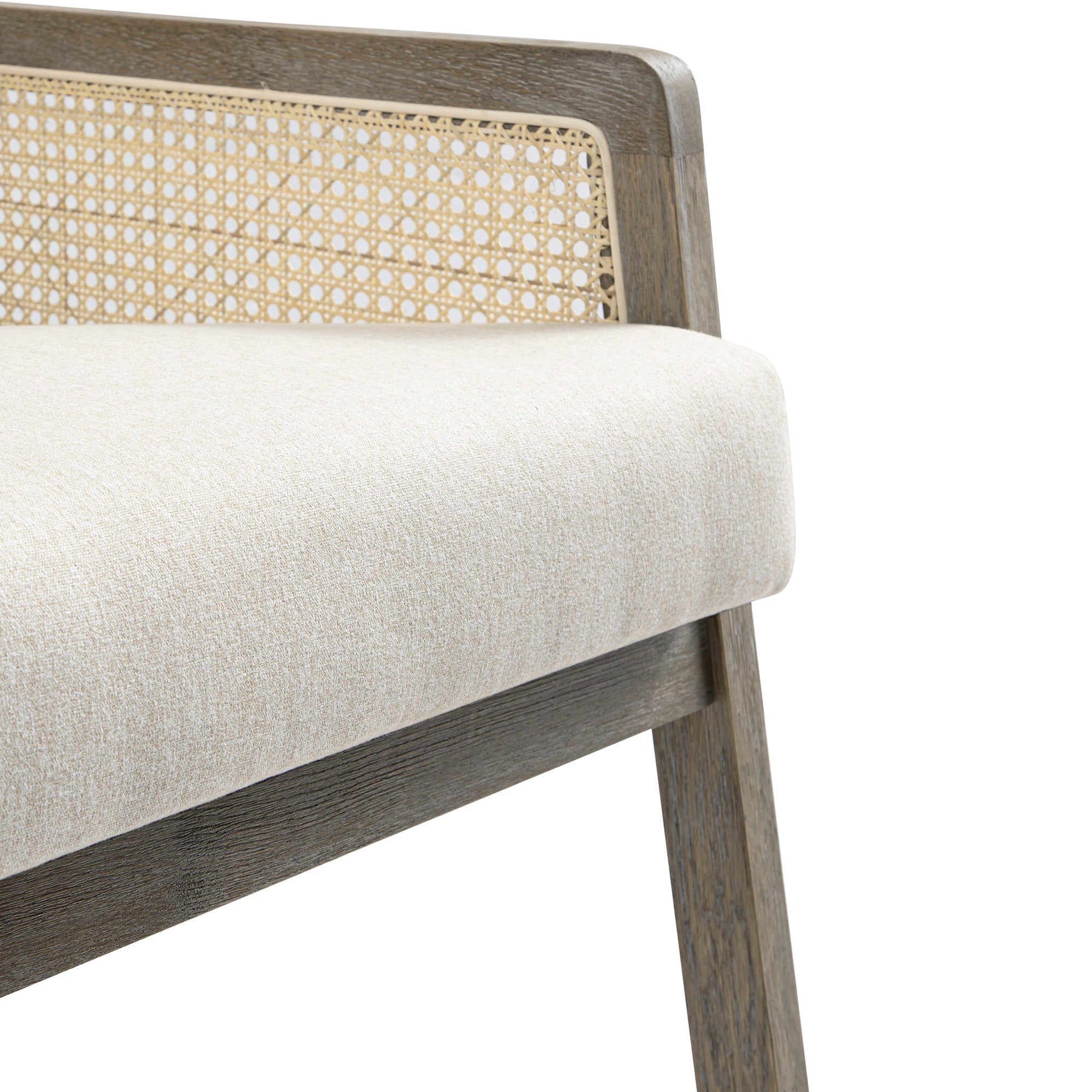 - Complete the look: Pictured with the Fyne Oatmeal Fabric Weathered Oak Rattan Armchair is our Maison Neutral Rosanna Cushion, Avanti Handwoven Salt & Pepper Diamond Bobble Wool Round Rug and Maru Silver Oak Bookcase with Cabinet.