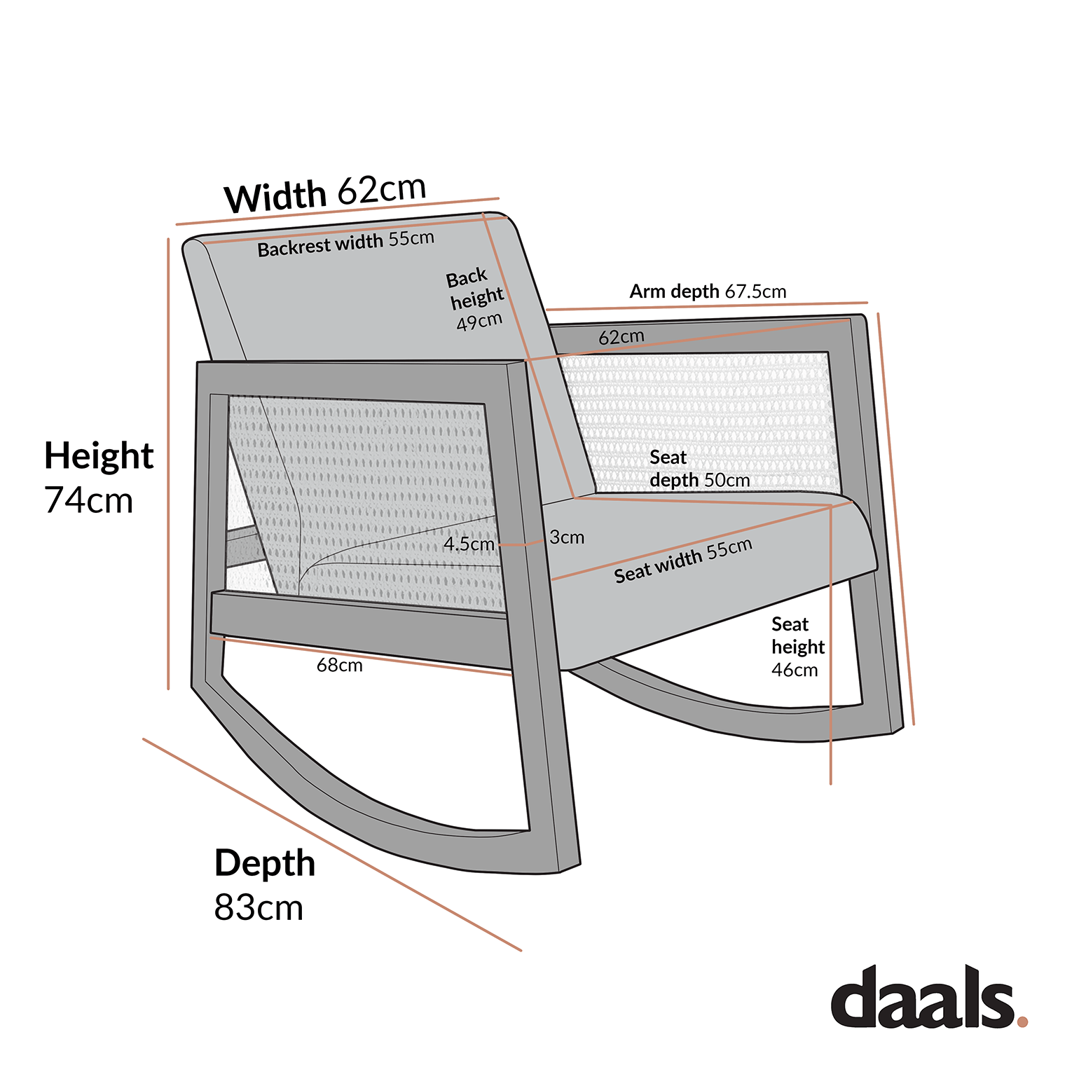 • Overall size: W 62.0 x D 83.0 x H 74.0 cm