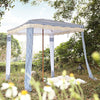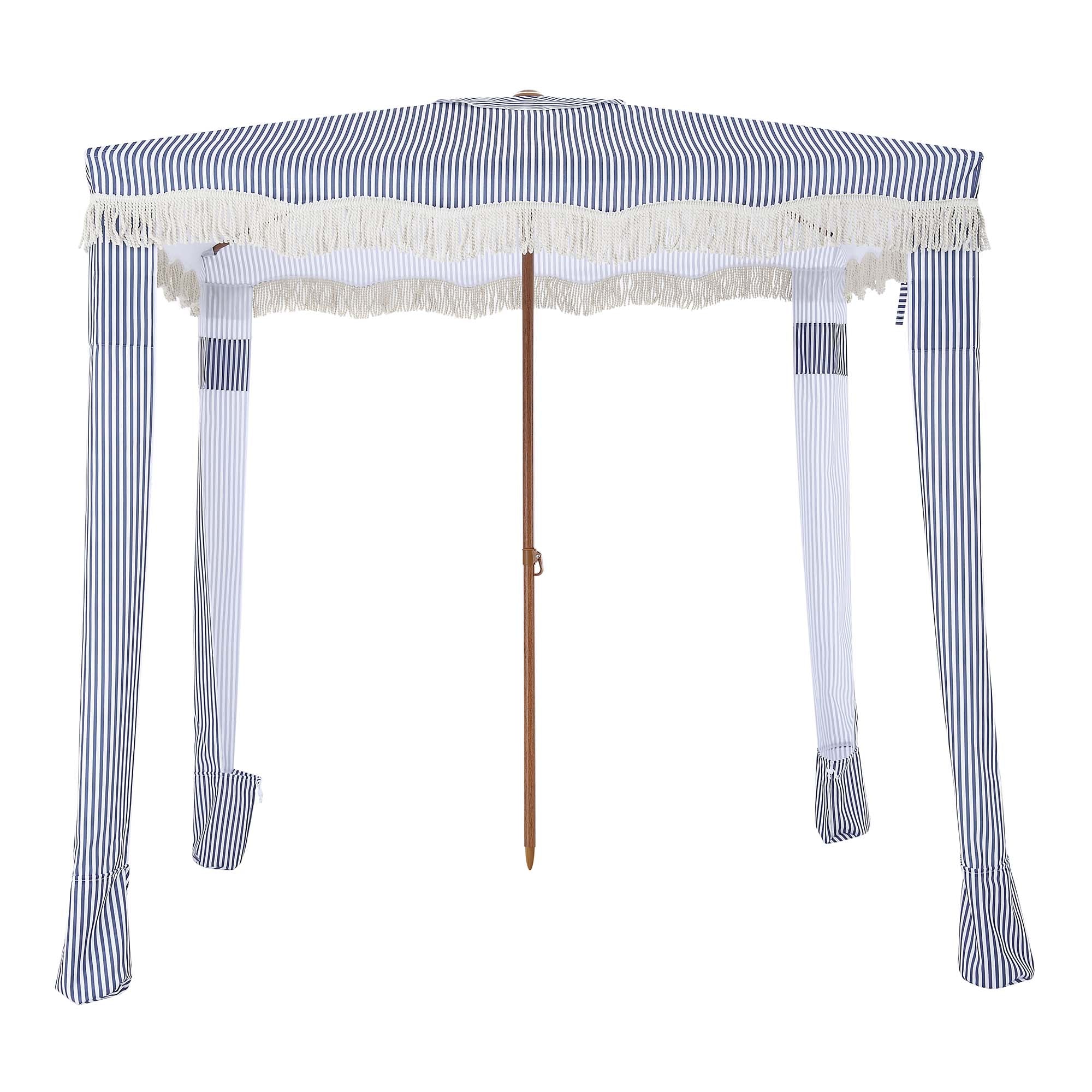 - Featuring blue and white stripe canopy with beige colour fringe, the cabana gives a vintage vibe.