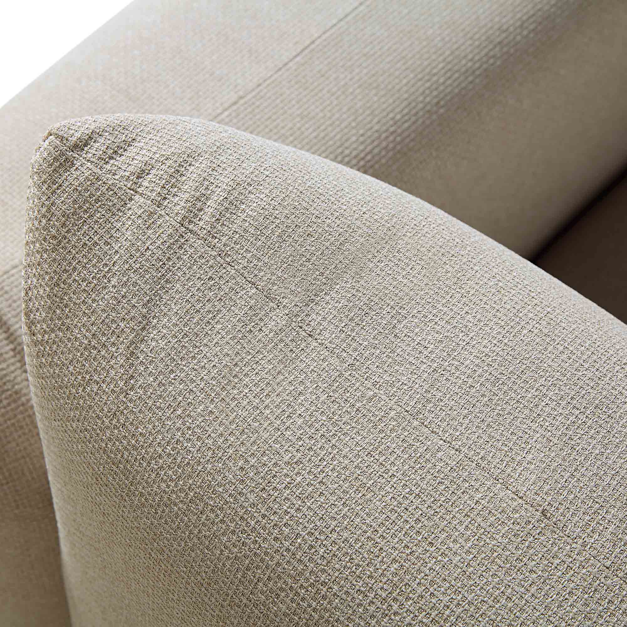 - Upholstered with durable neutral tone beige woven fabric to complement any home decor.