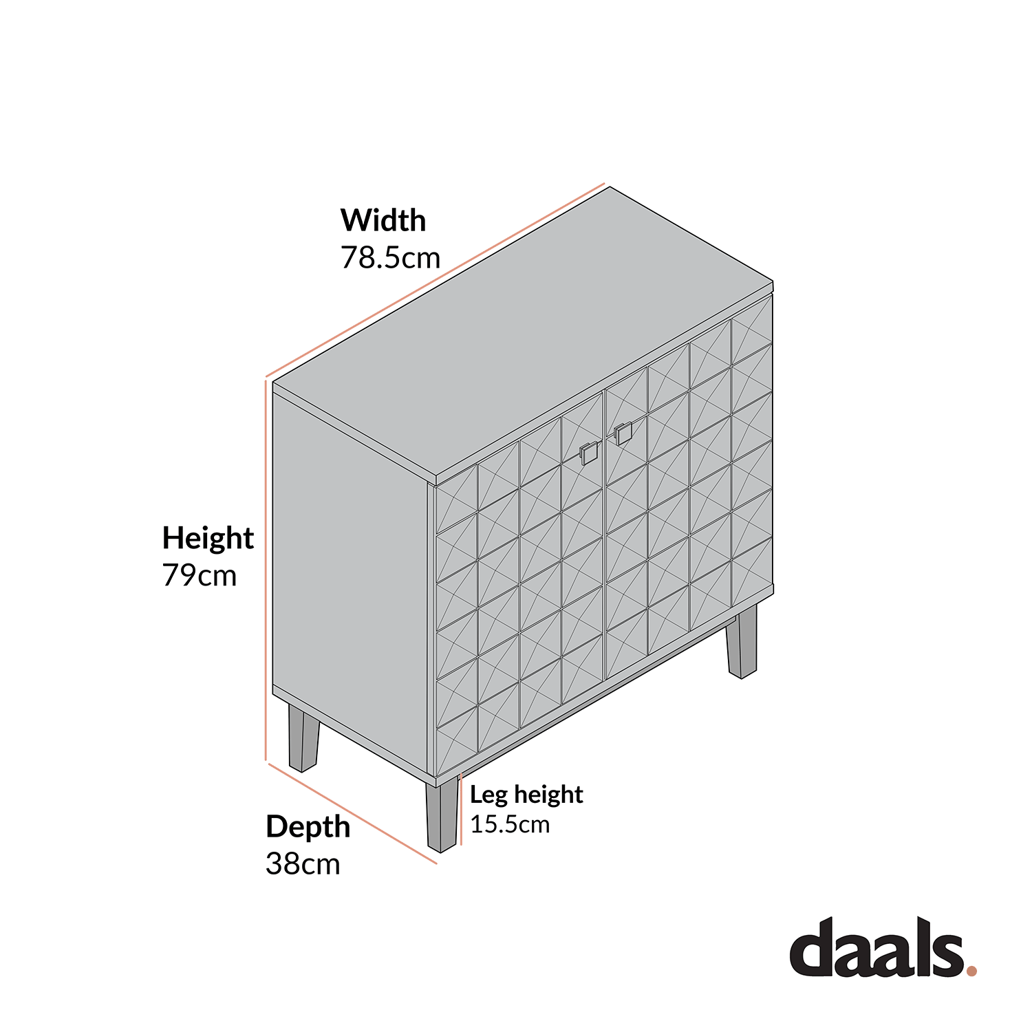 - Featuring geometric pattern door fronts, our Gibbs small sideboard is crafted from solid pine wood finished with clear paint, showcasing the rich grain of the natural wood material.