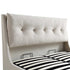 - The bed is designed with a winged side profile with buttoned headboard pillow for comfort when you sit up or relax in bed.