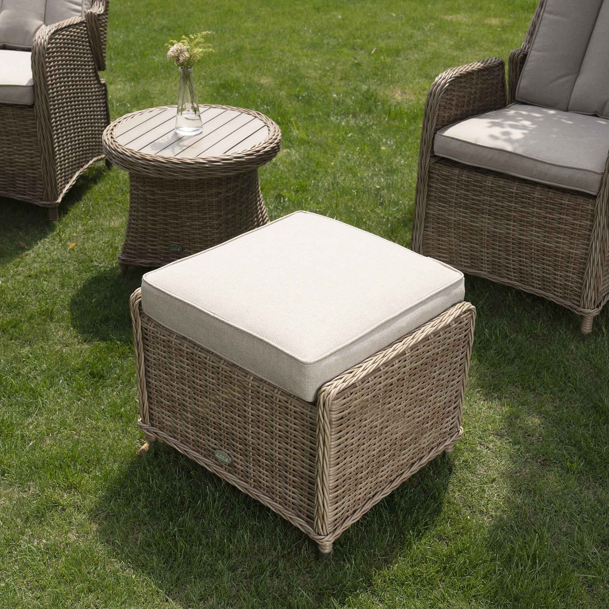 - Crafted from robust round and half round all-weather wicker weaves and aluminium frame, our Hampshire outdoor range is hard-wearing and sturdy.