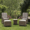- The easy to use reclining functionality of the chair, together with matching stools ensure you can lounge comfortably in the sun.