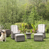 - The bistro set comprises of two recliner chairs with deep foam padded seat cushions in light grey, coordinated with grey wicker weaves.