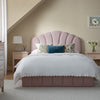 - Complete the look: Pictured with the Hana Petal Pink Chenille Ottoman Storage Bed is our Flora & Fauna Hand Embroidered Tree Of Life Cushion, Flora & Fauna Hand Embroidered Jacobean Oasis Cushion, Margot Rose Pink Embroidered Scallop Duvet Set, Aurora Hand Braided Cream Jute Rug, Oakham Nude Pink Bedside Table and Oakham Nude Pink Chest of 4 Drawers.
