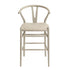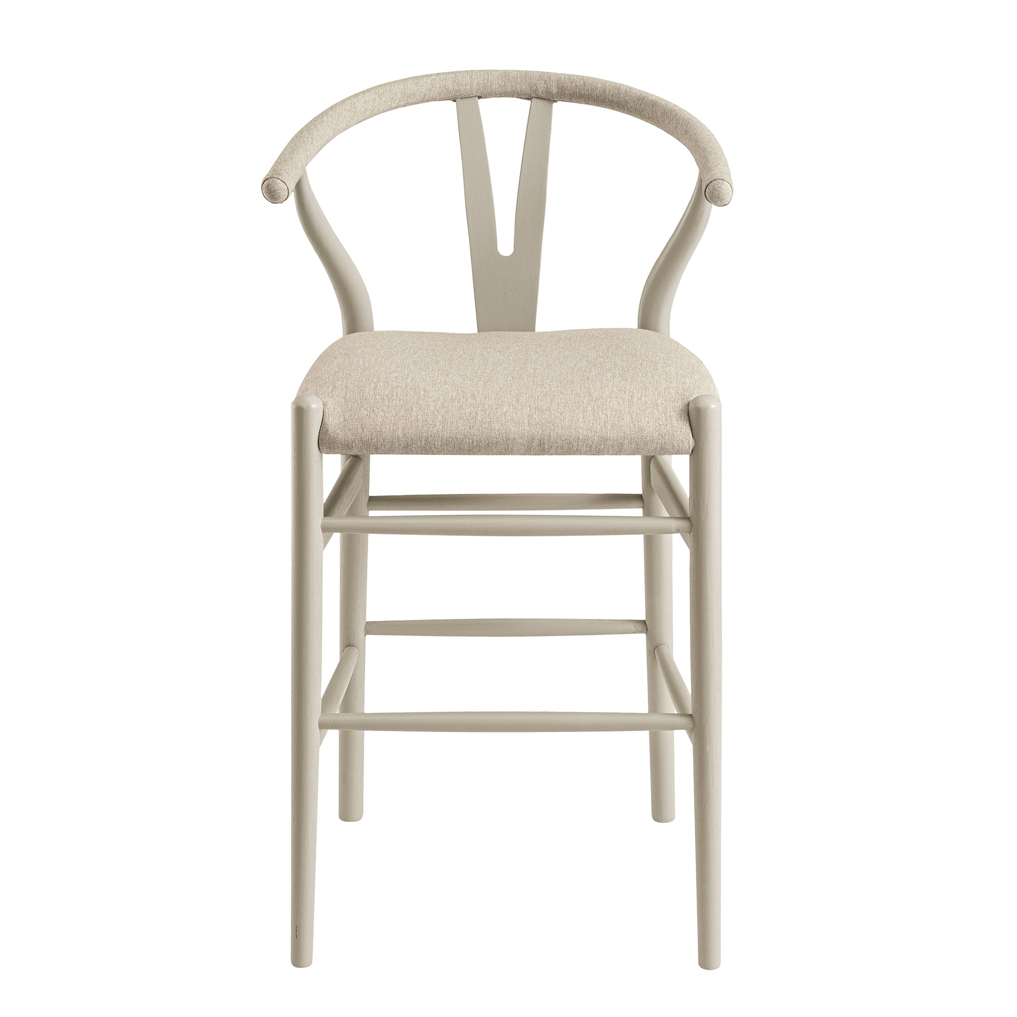 - Featuring the Y-shaped back, the counter chair is sturdily crafted from solid elm with beautiful greige colour matte paint, coordinating the oatmeal fabric upholstered padded seat.