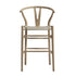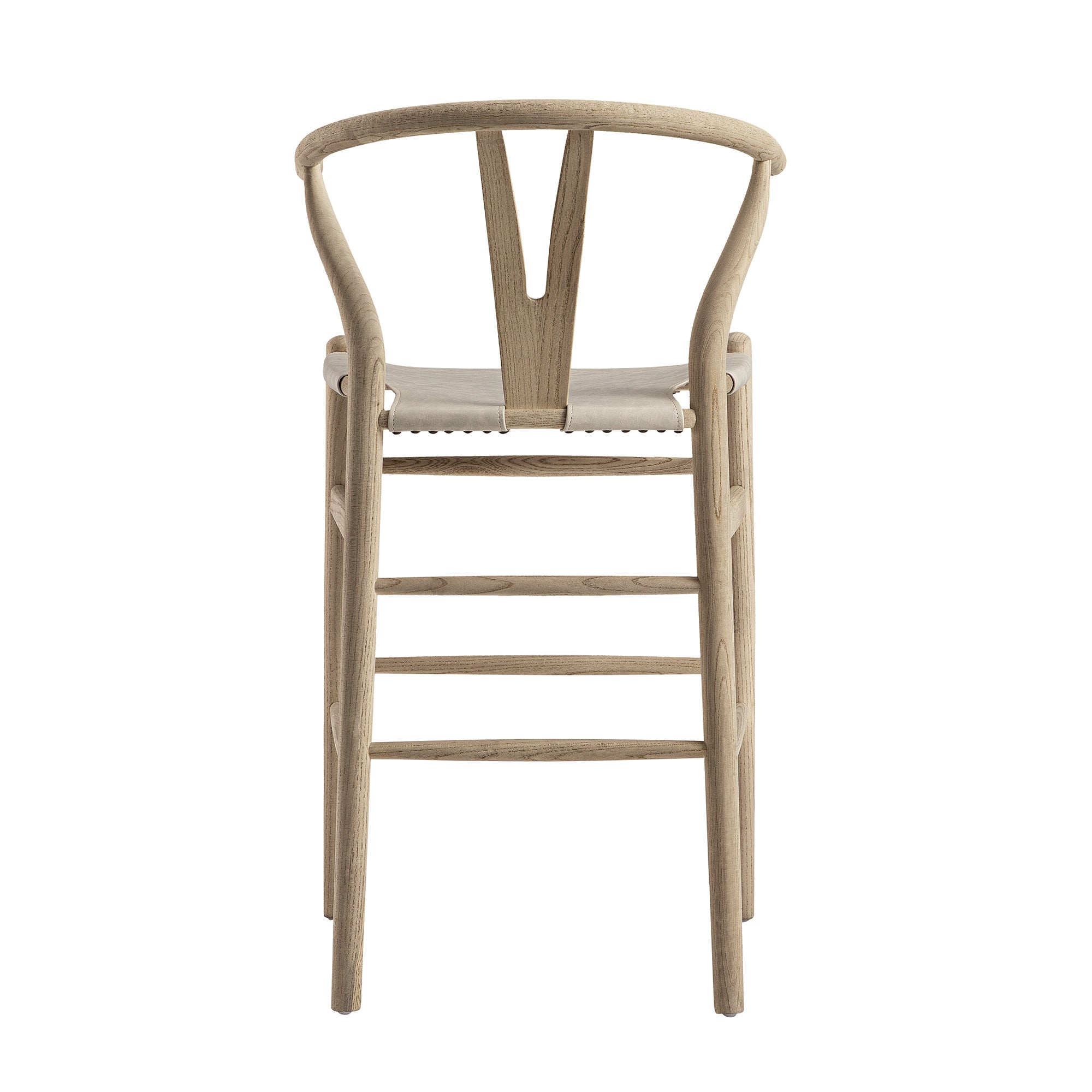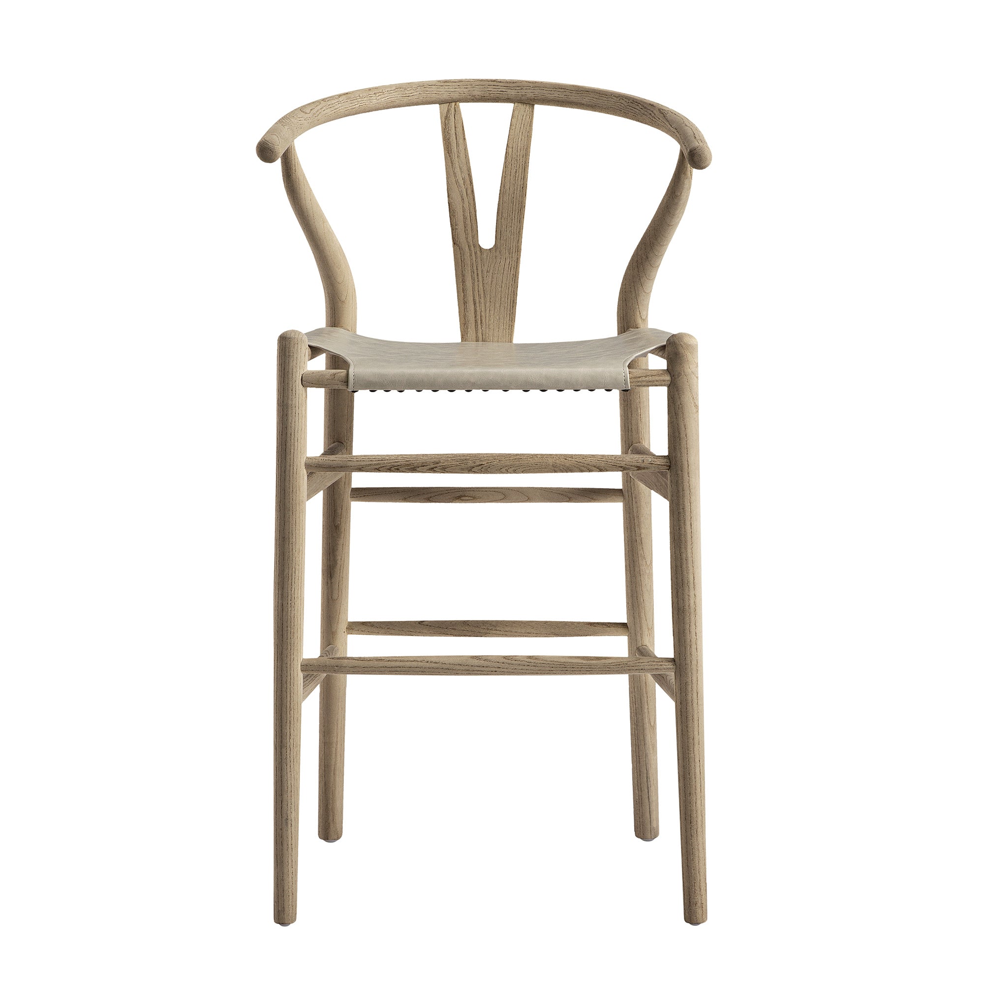 - Featuring the Y-shaped back, the chair is sturdily crafted from solid elm in an elegant weathered finish, coordinating the light grey faux leather seat.