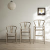 - Featuring the Y-shaped back, the chair is sturdily crafted from solid elm in an elegant weathered finish, coordinating the light grey faux leather seat.