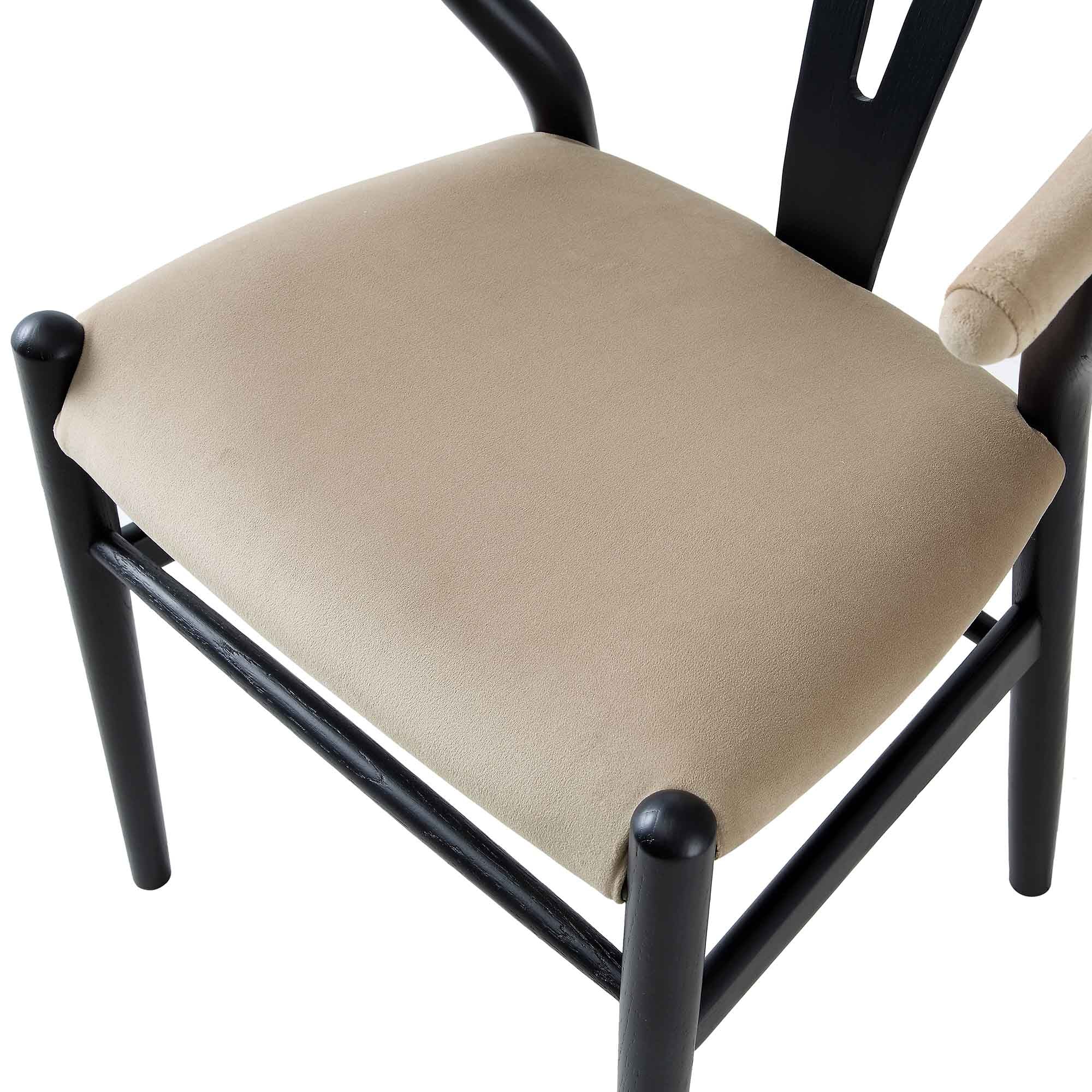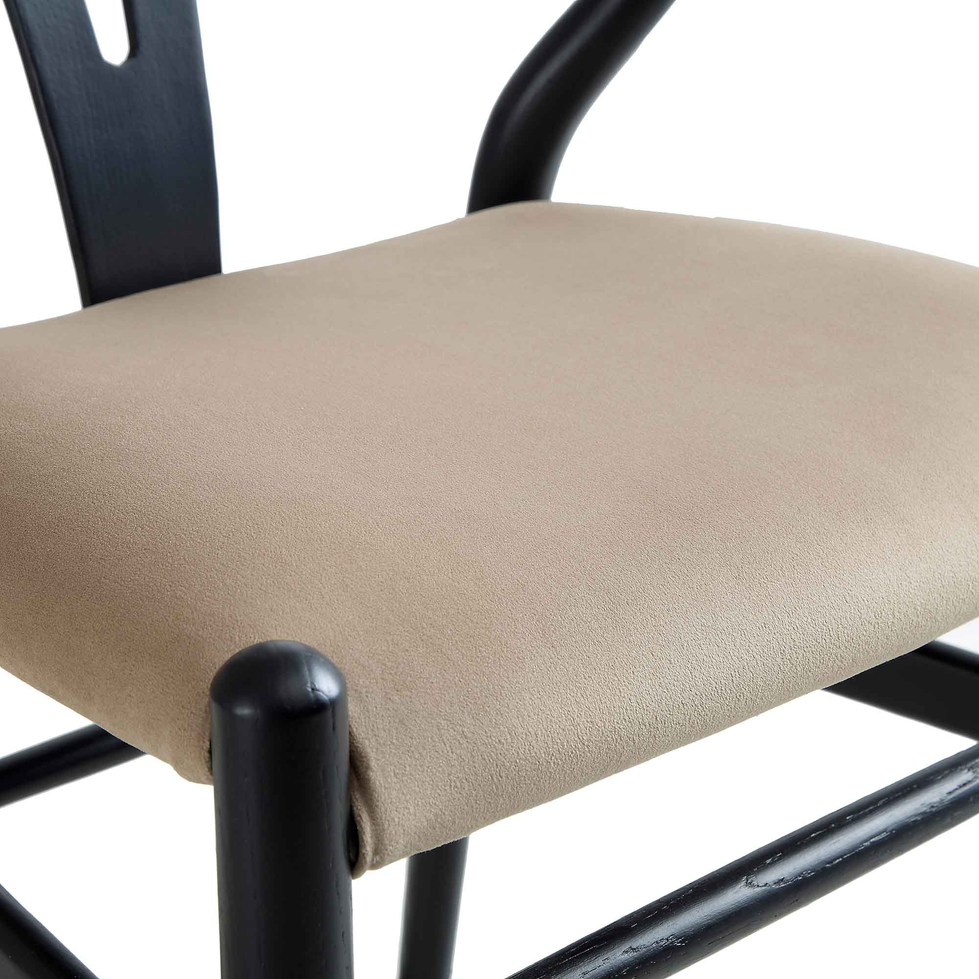 - Upholstered in sumptuous taupe velvet, the chair is sturdily crafted from solid elm wood in black finish.