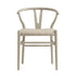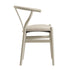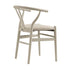 - Featuring the Y-shaped back, the chair is sturdily crafted from solid elm with beautiful greige colour matte paint, coordinating the oatmeal fabric upholstered padded seat.