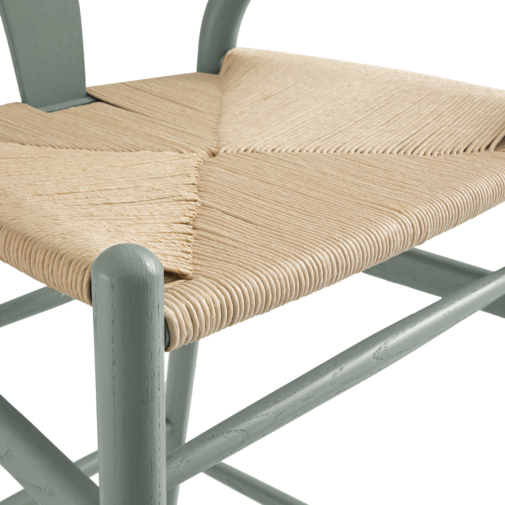 - Featuring the Y-shaped back and weaved seat pad, the chair is sturdily crafted from solid elm wood without compromising comfort.