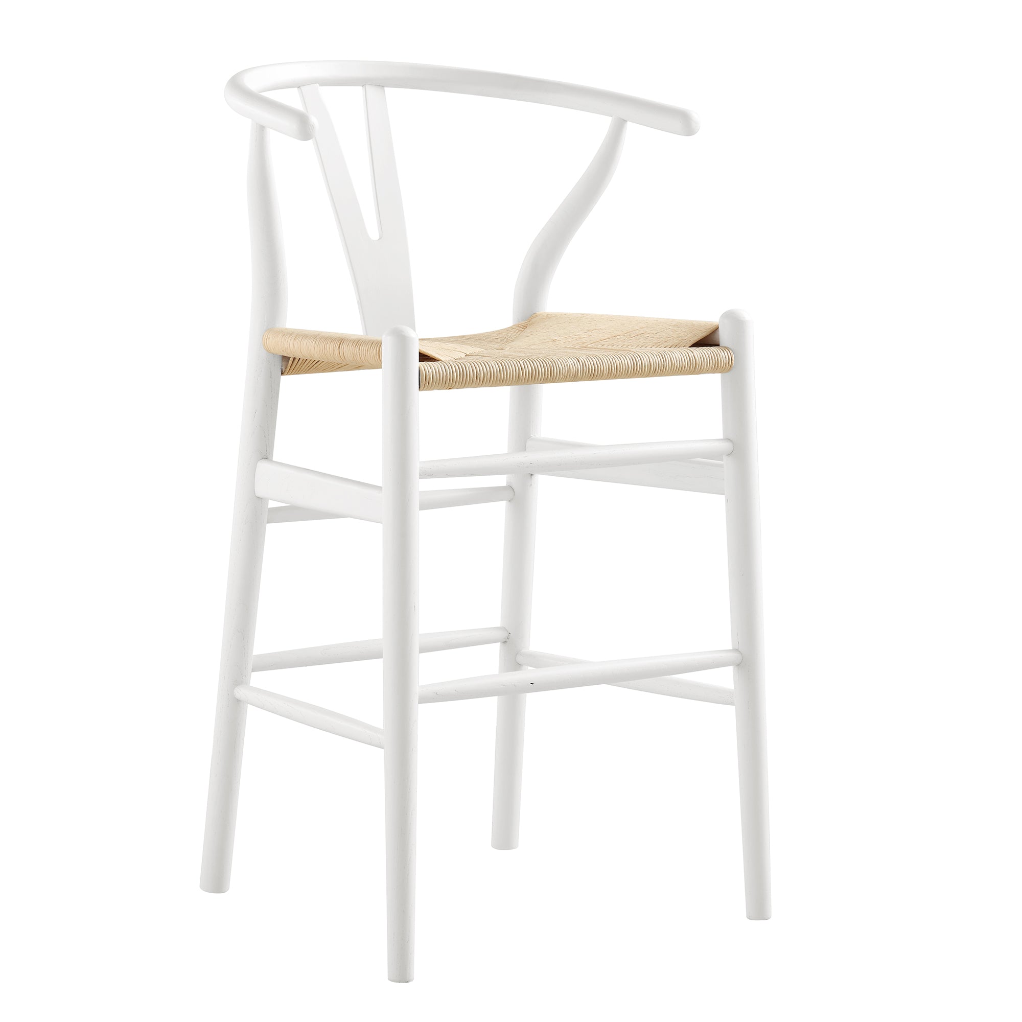 - Featuring the Y-shaped back and weaved seat pad, the chair is sturdily crafted from solid elm wood without compromising comfort.