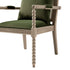 - The chair has padded seat and removable back cushion upholstered in moss green velvet touch fabric, complimented with matching patches on armrests.
