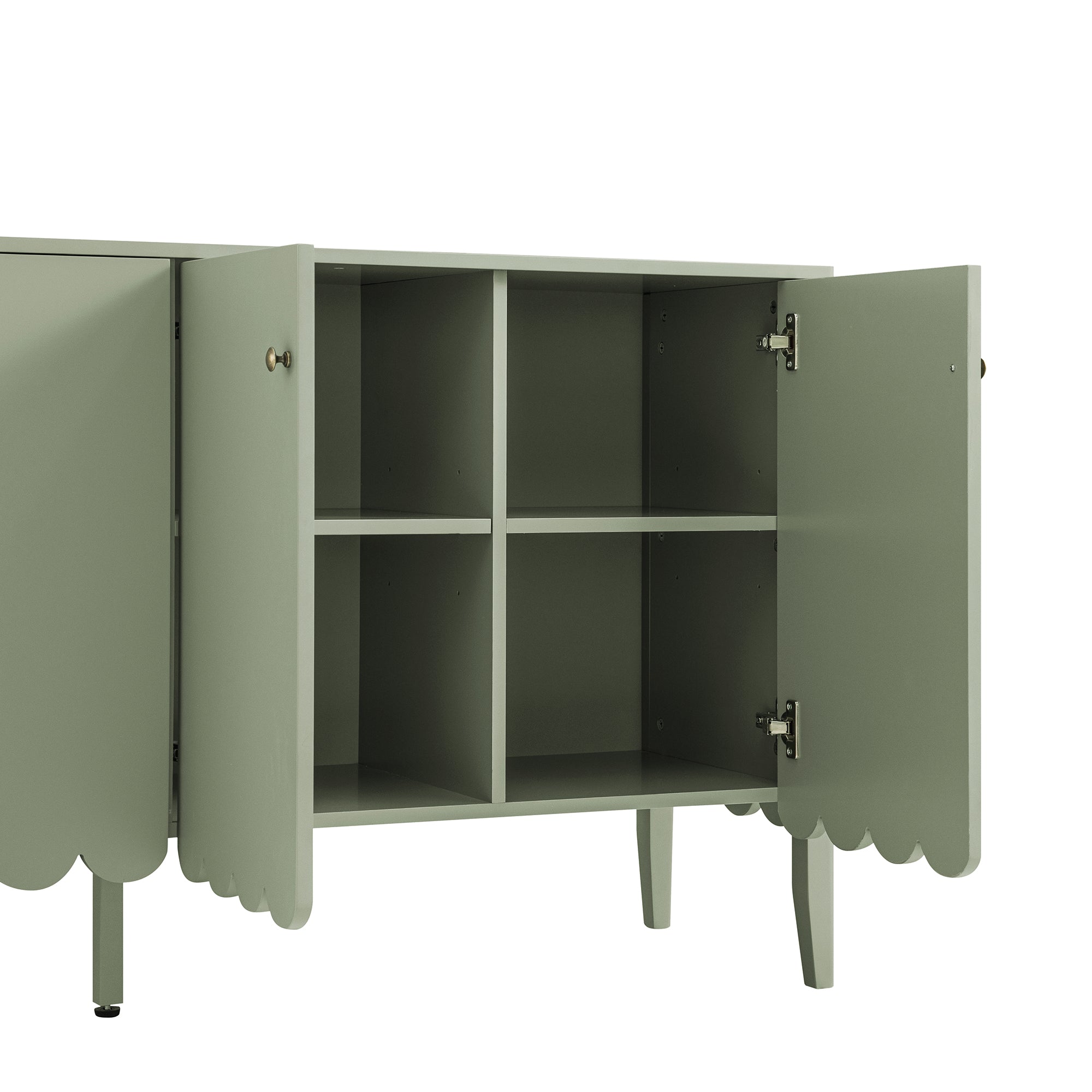- Scalloped apron on bottom of doors add to the charm of the sideboard.