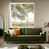 - Complete the look: Pictured with our Henrietta Large 3-Seater Moss Green Velvet Sofa is our Avanti Handwoven Cream Bobble Wool Rug