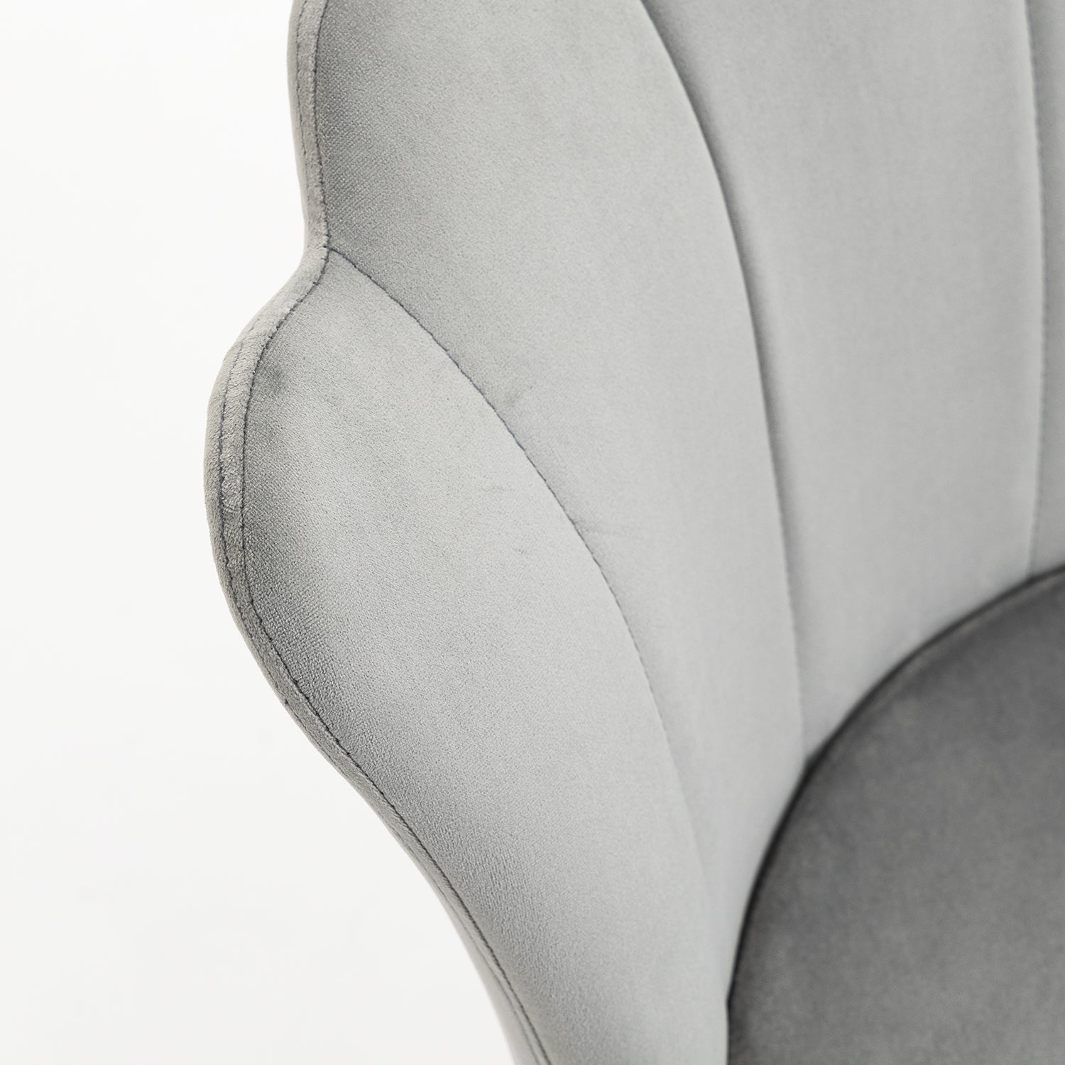 - Its scalloped edges, gold-colour plated legs,together with ample foam padded seat and internal metal frame, make the chair both stylish, functional and sturdy.