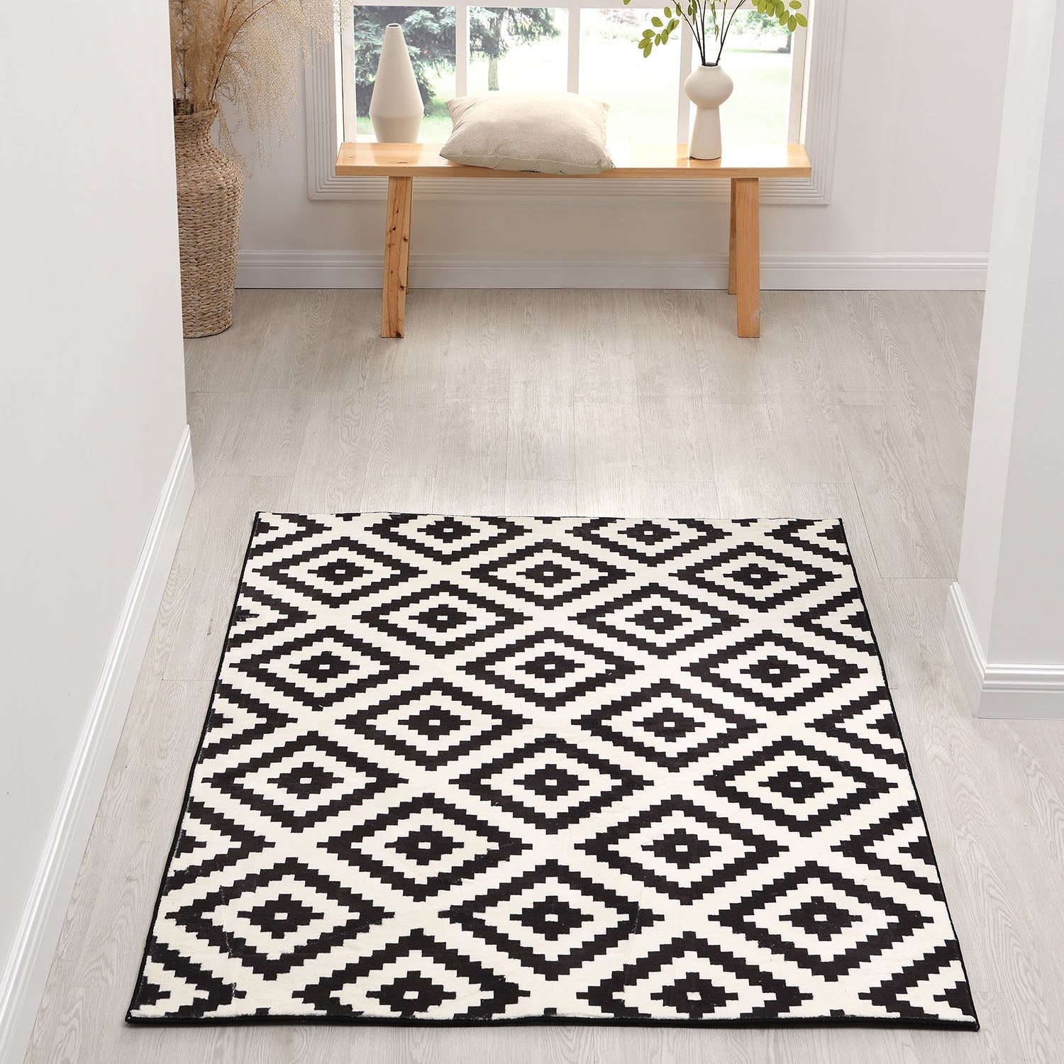 With a simple yet eye catching black and white design, the Illusion Rug is also lightweight making it easy to move around.