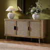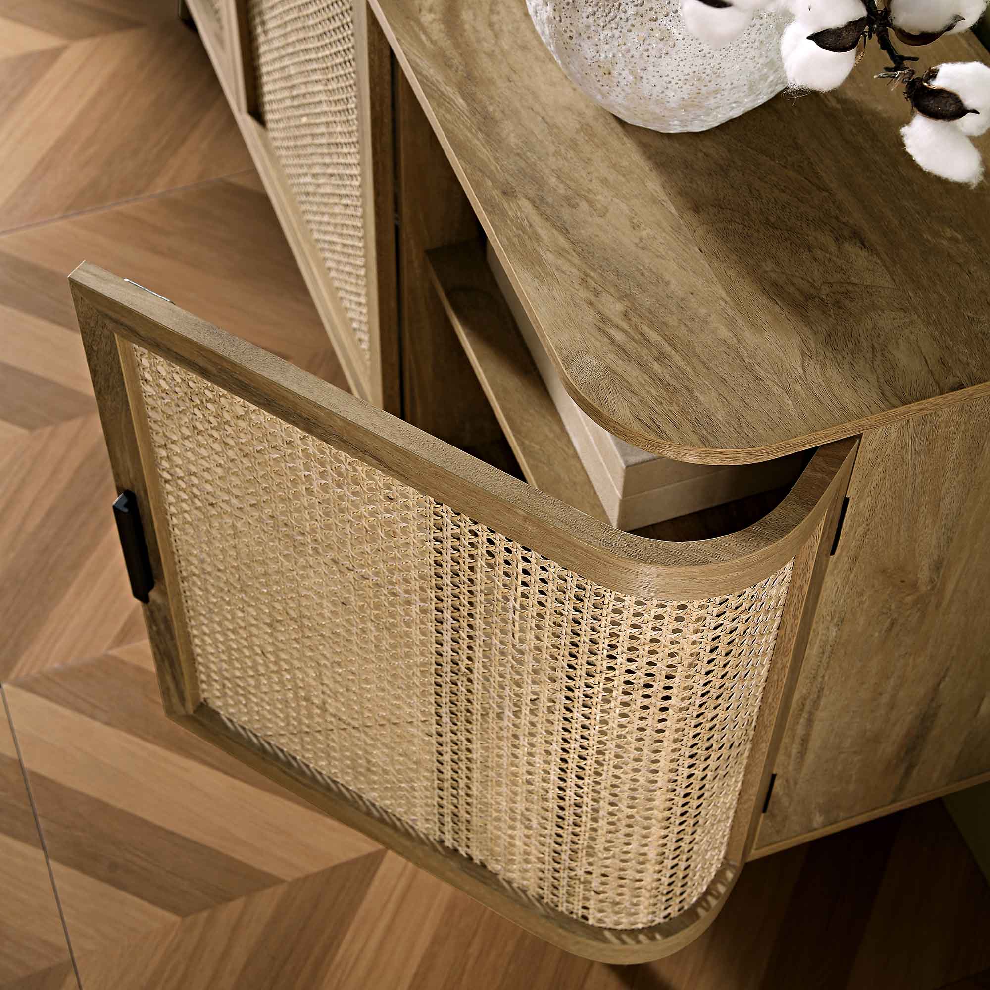 - Our Izzy sideboard features a rounded edge profile with natural rattan panelling for an airy and soft appeal.