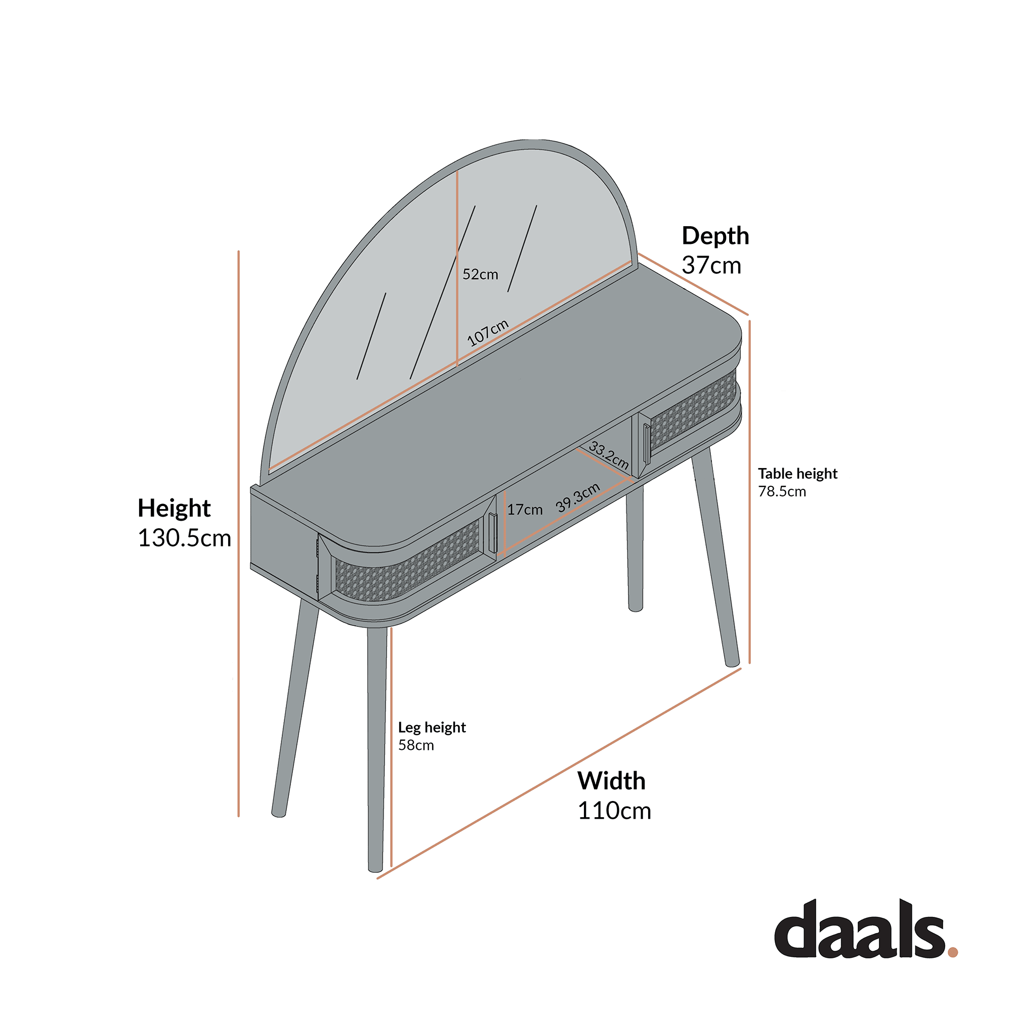 - Size: W 110 x D 37 x H 130.5 cm.
