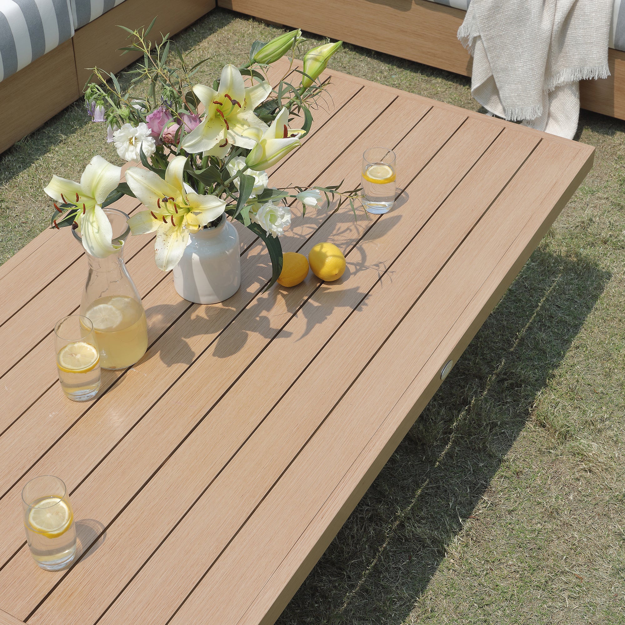 - The aluminium frames are hand welded, featuring a hand-painted finish in natural wooden effect which create a protective, weather-resistant, rustproof, and UV-inhibiting barrier
