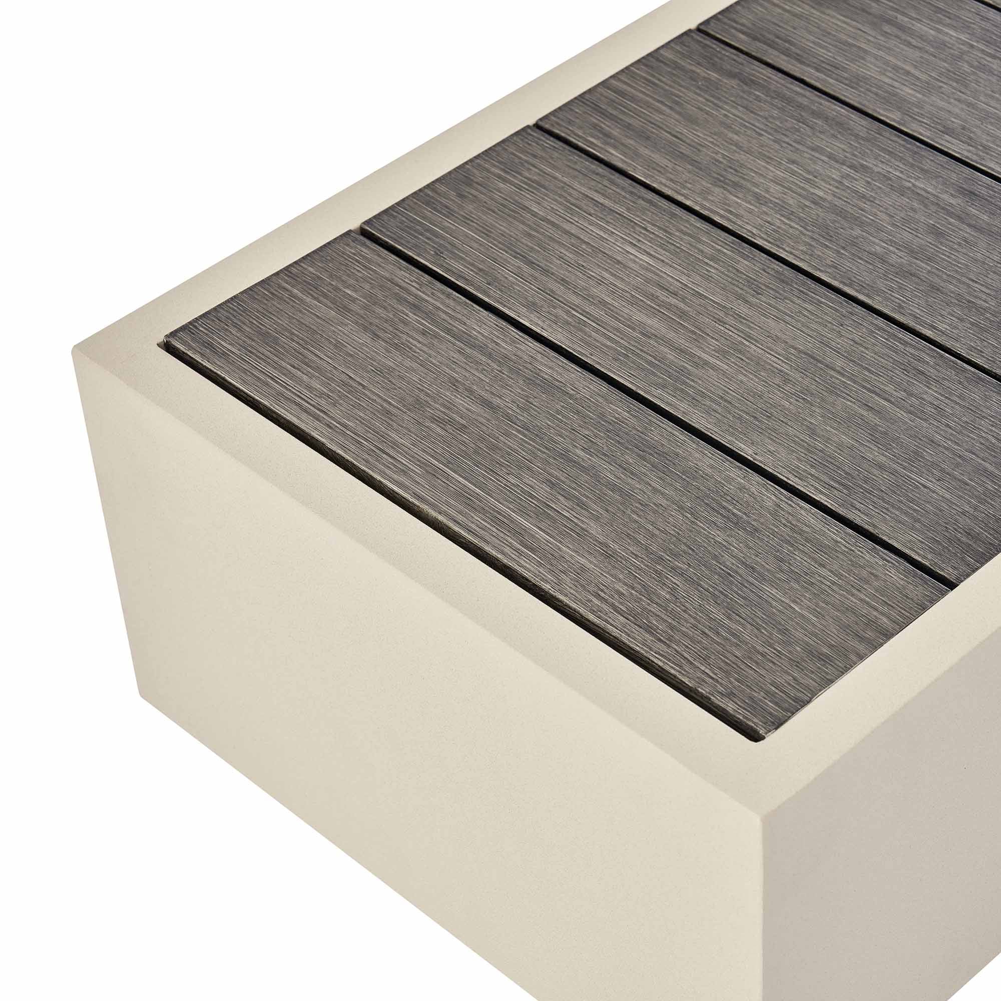 • Crafted from hard wearing and sturdy aluminium frame with a stylish slatted top with hand brushed wood effect finish, our Jardin side table is rust proof without compromising on style