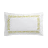 - Beautifully embroidered swirling vines of wild Jasmine flowers in soft hues of white and green adorn the borders. The pillowcase's intricate detailing is balanced by the simplicity of the crisp white base, adding subtle interest to your space while serving as a neutral backdrop for any bedroom decor.
