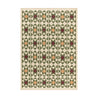 - This stylish rug features a striking repeat geometric pattern in shades of olive green, ochre and deep maroon red which is perfectly complimented by the neutral cream background.