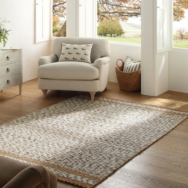 - Thoughtfully created using a combination of high quality wool and hard wearing jute, the Kerala rug incorporates neutral tones throughout. The rug is complete with a border, all of which has been produced using a flatweave and jacquard weaving technique, making it the perfect addition to every interior.