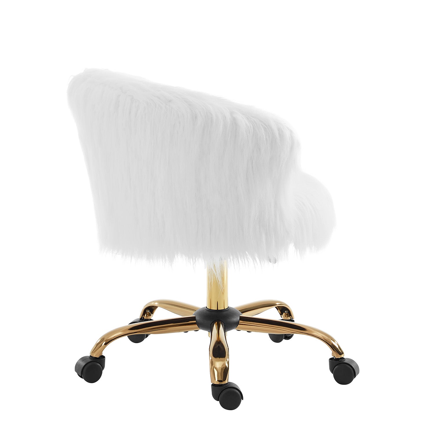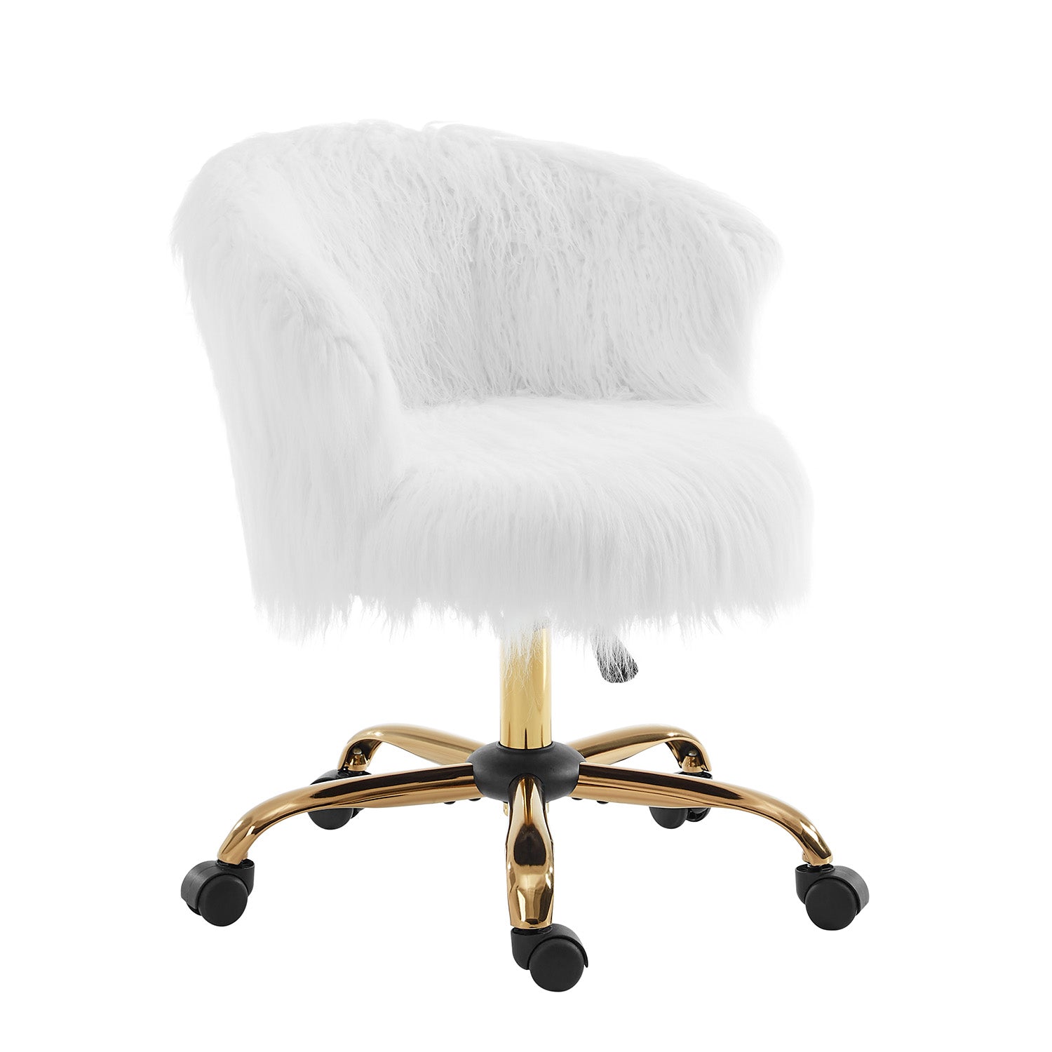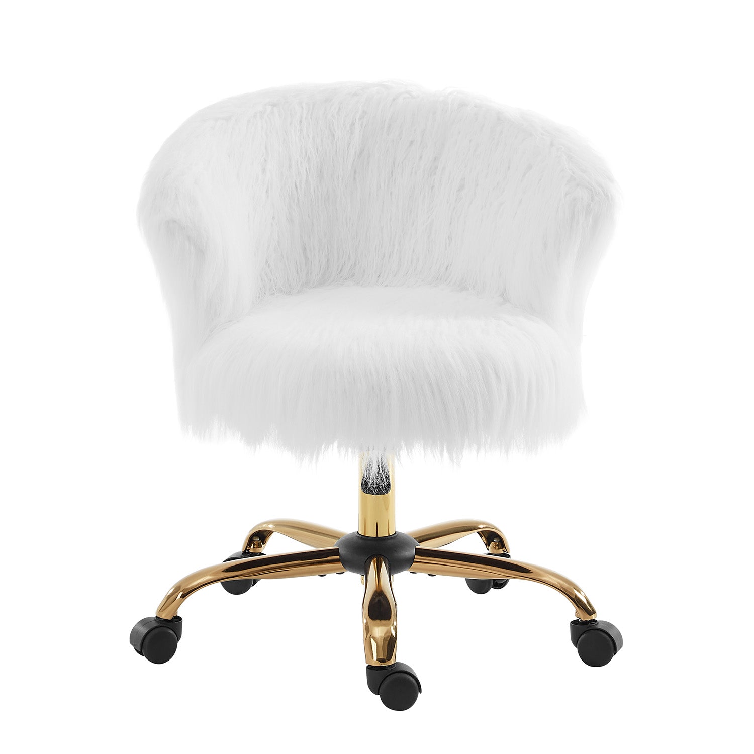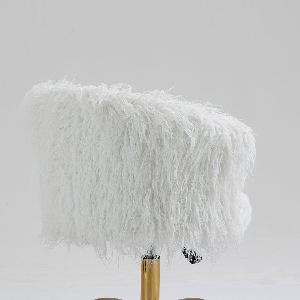 - Our Kylie plush shaggy swivel chair features combination of cosy shaggy upholstery and gold-toned chrome legs. It will make a stunning statement piece as a home office chair, a vanity chair, or an accent chair.